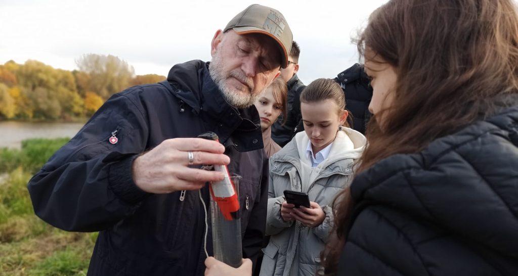 В ходе занятий школьники ознакомились с принципами работы портативных экологических приборов и самостоятельно замерили основные гидрофизические показатели — кислотность, электропроводность, температуру, содержание кислорода в воде, оценили облачность.
