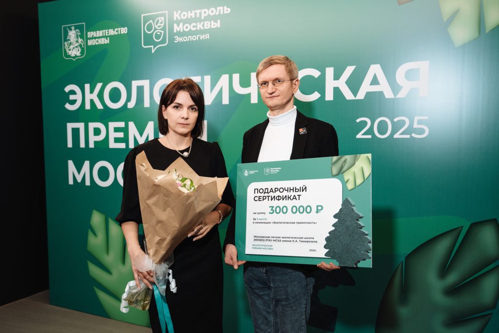 27 ноября 2025 года состоялась торжественная церемония награждения победителей Экологической премии Правительства Москвы. В конкурсе, на который в этом году поступило рекордное количество заявок — более 550 проектов, — наша кафедра заняла почетное III место в номинации «Экологическая грамотность».