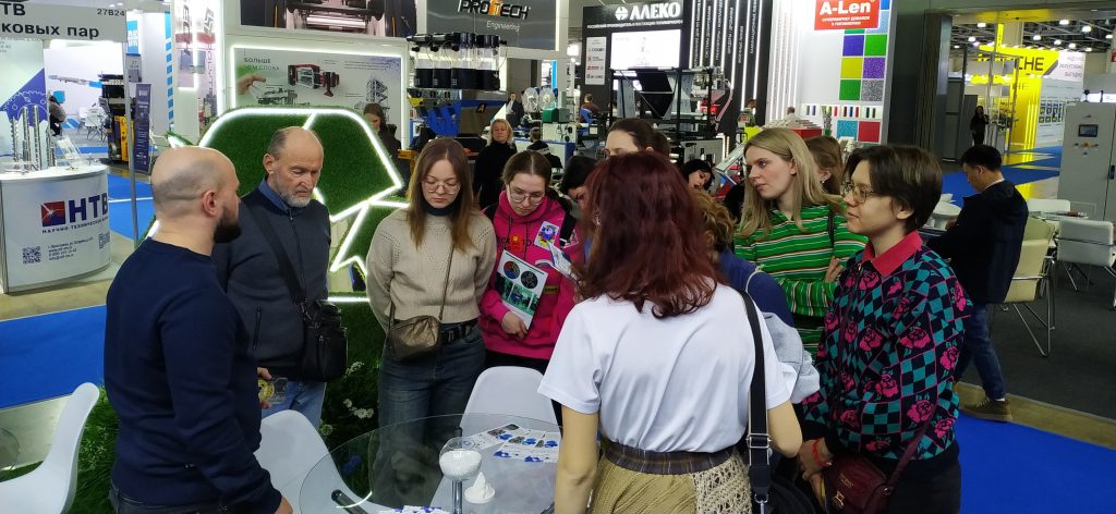 Студенты кафедры экологии групп ДВ-405 и 406 изучающие в текущем семестре дисциплину «Обращение с отходами» вместе с преподавателями кафедры Е.Б. Таллером, О.В. Латышевой и С.Ю. Ермаковым посетили Международную выставку технологий переработки и утилизации отходов Recycling Solutions, проводимую в рамках выставки пластмасс и каучуков Ruplasticа.